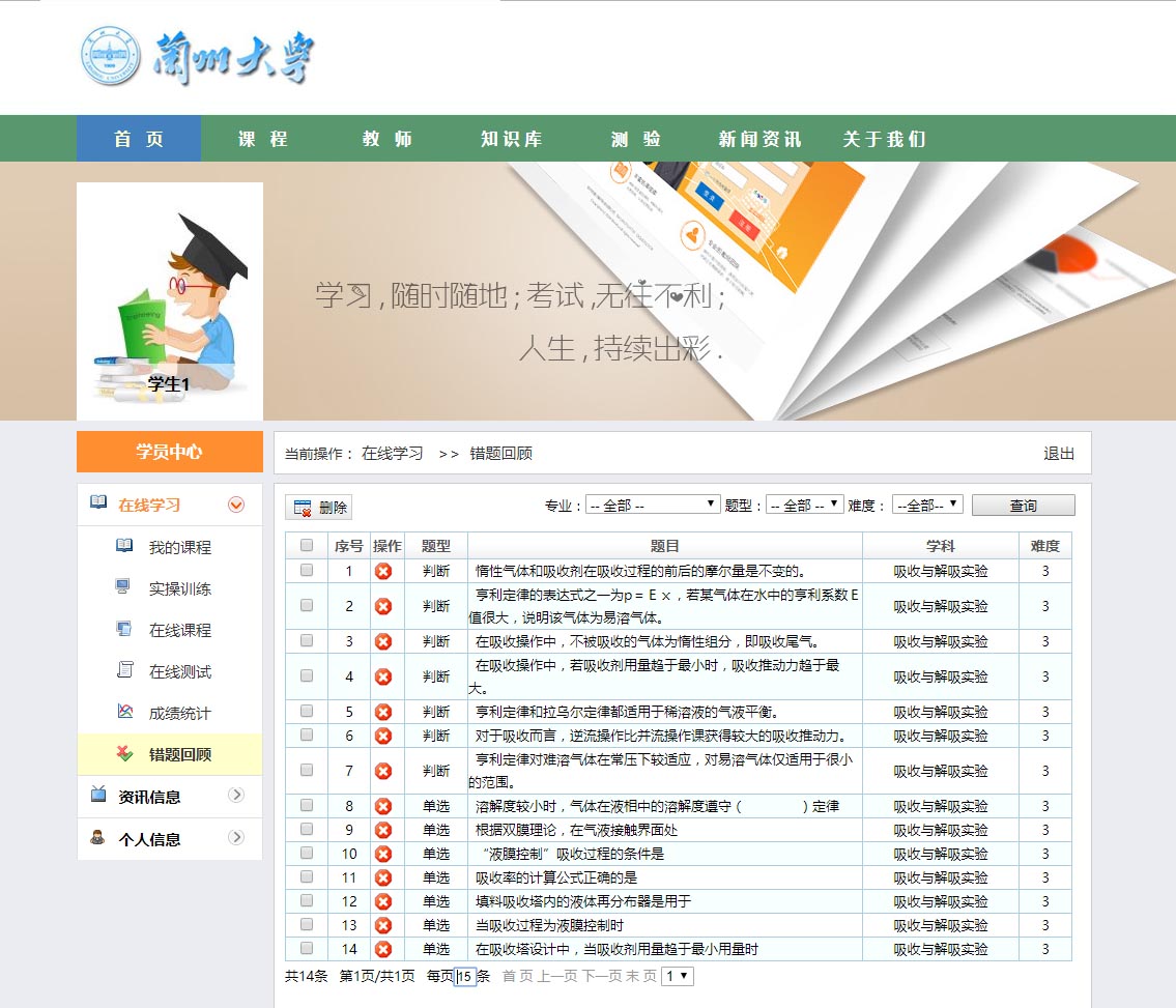 系統的主要功能可以理解為在線“學習與測評”。它的主要功能也集中在兩點,一是學習培訓;二是考試。在學習培訓部分,首先是老師編排課程,然后學生選擇相應課程學習。考試部分,則由老師錄入試題,隨機生成試卷,學生參加考試。通過記錄學員在線上參加的理論學習、考試、錯題回顧等情況,實現對學員學習情況的全程跟蹤管理和對學生培訓需求的全面掌握。