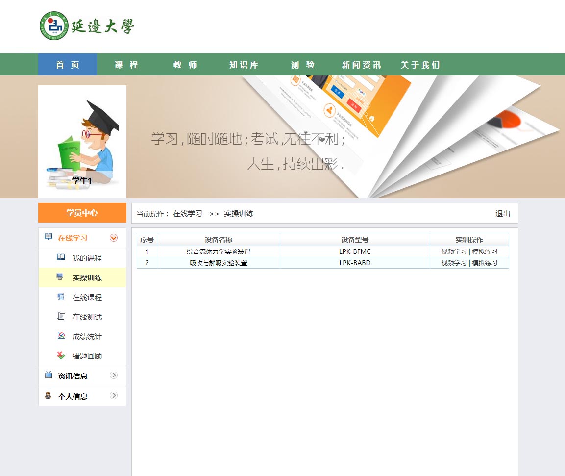 虛擬仿真實訓(xùn)系統(tǒng)的主要功能可以理解為在線“學(xué)習(xí)與測評”。它的主要功能也集中在兩點,一是學(xué)習(xí)培訓(xùn);二是考試。在學(xué)習(xí)培訓(xùn)部分,首先是老師編排課程,然后學(xué)生選擇相應(yīng)課程學(xué)習(xí)。考試部分,則由老師錄入試題,隨機生成試卷,學(xué)生參加考試。通過記錄學(xué)員在線上參加的理論學(xué)習(xí)、考試、錯題回顧等情況,實現(xiàn)對學(xué)員學(xué)習(xí)情況的全程跟蹤管理和對學(xué)生培訓(xùn)需求的全面掌握。