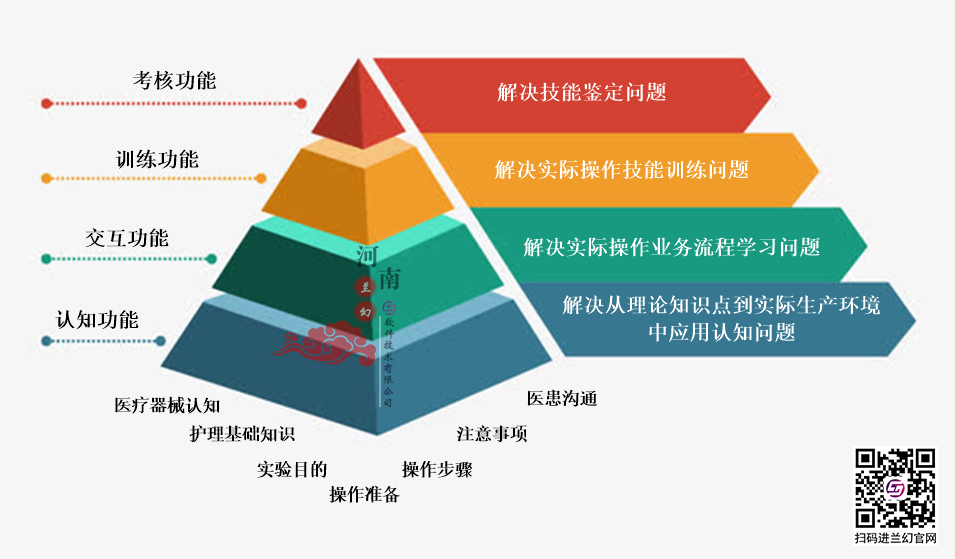 護(hù)理虛擬仿真系統(tǒng)解決的問題:1.認(rèn)知功能——解決從理論知識(shí)點(diǎn)到實(shí)際生產(chǎn)環(huán)境中應(yīng)用認(rèn)識(shí)問題。2.交互功能——解決實(shí)際操作業(yè)務(wù)流程認(rèn)知學(xué)習(xí)的問題。3.訓(xùn)練功能——解決實(shí)際操作技能訓(xùn)練的問題。4.考核功能——解決技能鑒定問題。