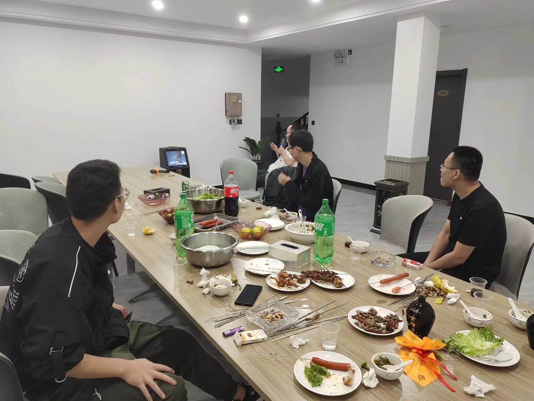 傍晚將至,在與夏天告別后的清爽初秋時節,在地地道道的伏羲山農家院來了一場“食欲之秋、悠閑之秋、味覺之秋、慵懶之秋、秋高氣爽的深夜烤堂盛宴”。羊肉串、烤雞翅、雞腿等等供應不斷,化身為“資深燒烤大師”的兩位趙總架起燒烤爐子,點燃炭火,就是開整,當第一批烤肉新鮮出爐后,公司小伙伴們紛紛前來品嘗,用河南話簡單明了的講就是一個字——中,兩個字——真中,烤肉火候掌握加上特質醬料一抹,實在是回味無窮。