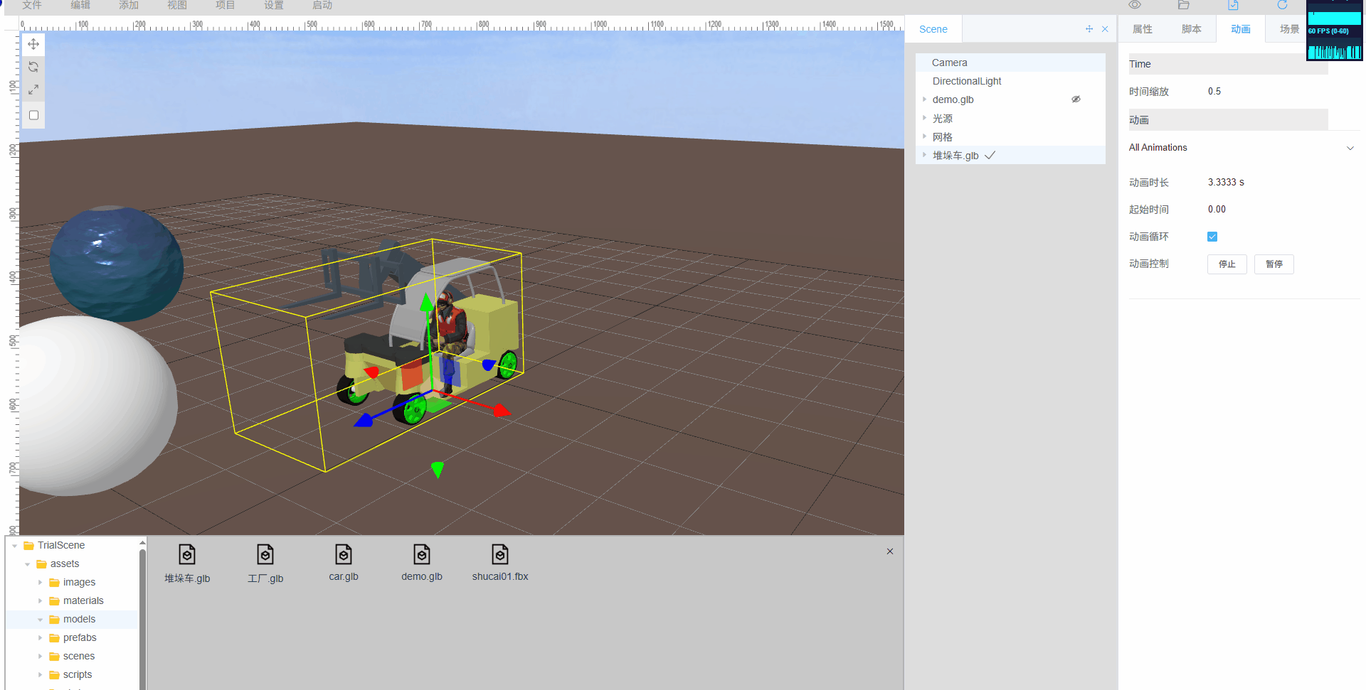 新增基于時(shí)間軸的關(guān)鍵幀動(dòng)畫(huà)編輯器,支持路徑動(dòng)畫(huà)、屬性動(dòng)畫(huà)、序列動(dòng)畫(huà)等多種類(lèi)型,可模擬設(shè)備運(yùn)轉(zhuǎn)、施工進(jìn)度、物理運(yùn)動(dòng)等動(dòng)態(tài)過(guò)程。動(dòng)畫(huà)參數(shù)可綁定實(shí)時(shí)數(shù)據(jù),實(shí)現(xiàn)“數(shù)據(jù)驅(qū)動(dòng)動(dòng)畫(huà)”。