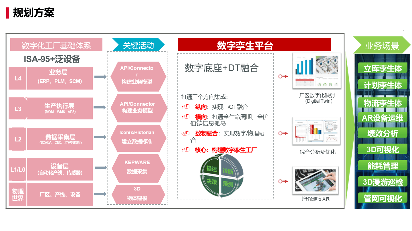 某汽車(chē)制造企業(yè)擁有沖壓、焊裝、涂裝、總裝四大車(chē)間,設(shè)備種類(lèi)多、數(shù)據(jù)量大,傳統(tǒng)監(jiān)控系統(tǒng)為二維組態(tài)界面,難以直觀反映生產(chǎn)線整體狀態(tài)。企業(yè)希望建設(shè)數(shù)字孿生工廠,實(shí)現(xiàn)設(shè)備實(shí)時(shí)監(jiān)控、故障預(yù)警、生產(chǎn)優(yōu)化。